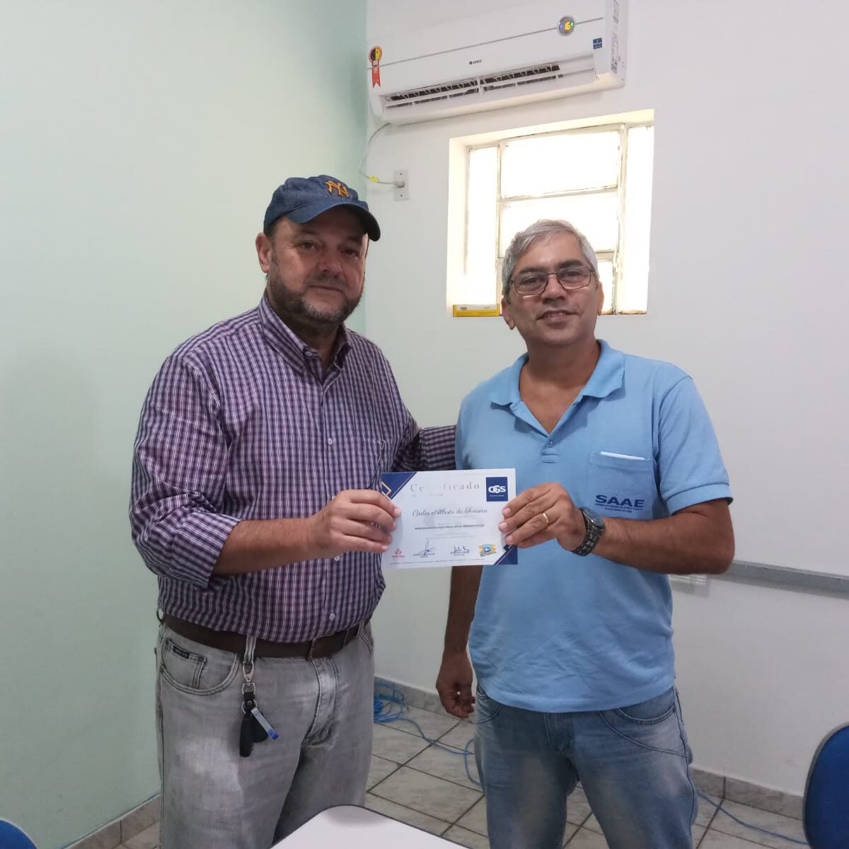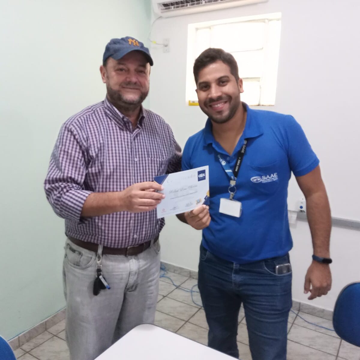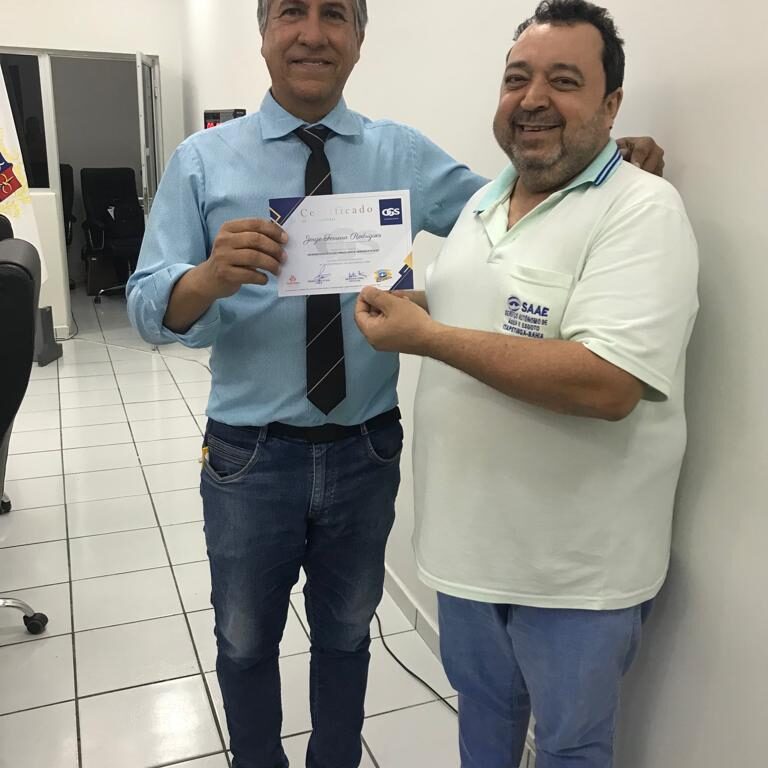 Finalizando o processo, o diretor do SAAE, Eng. Airton Ferraz, está promovendo a entrega dos certificados aos participantes que cumpriram a carga horária do curso.