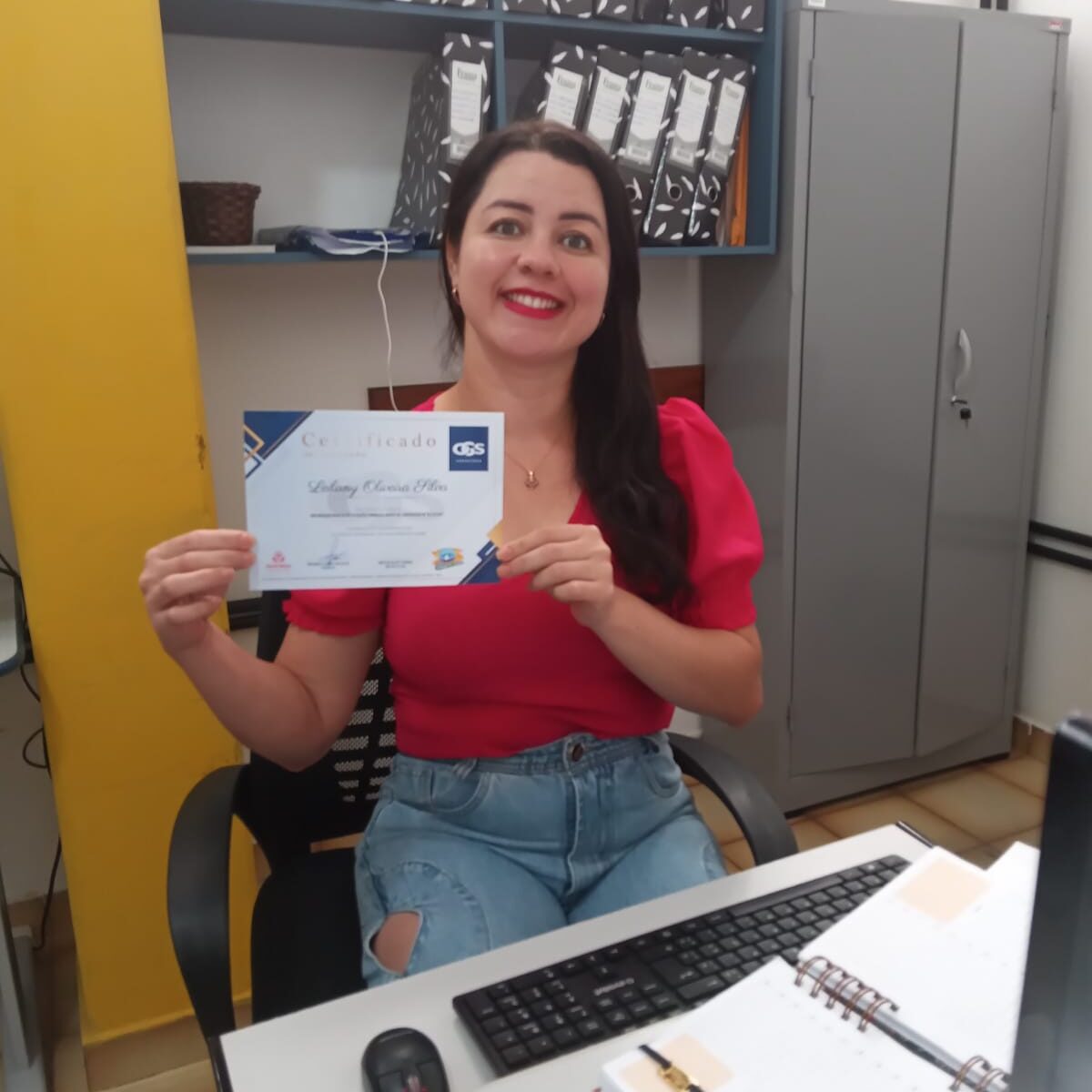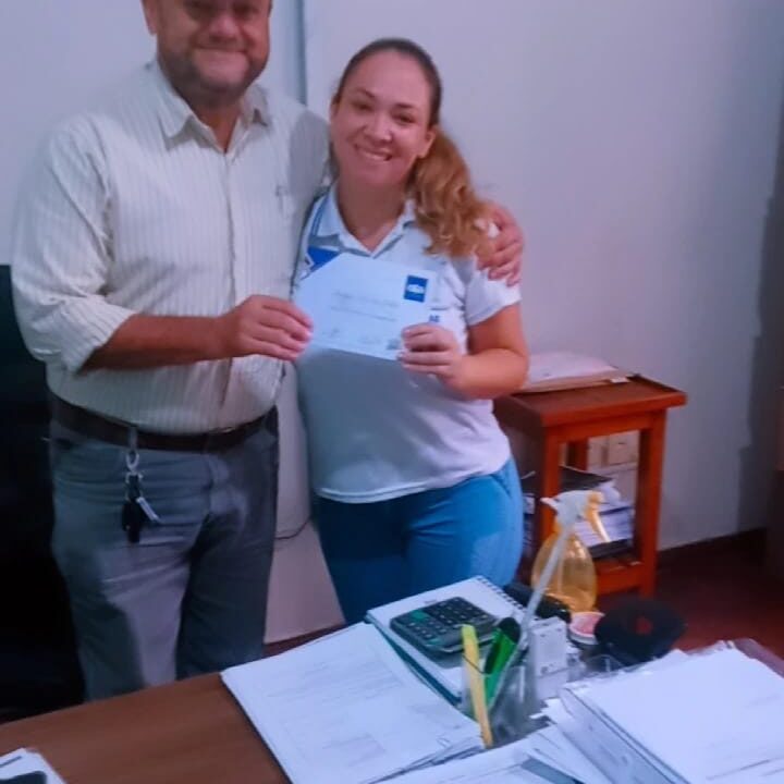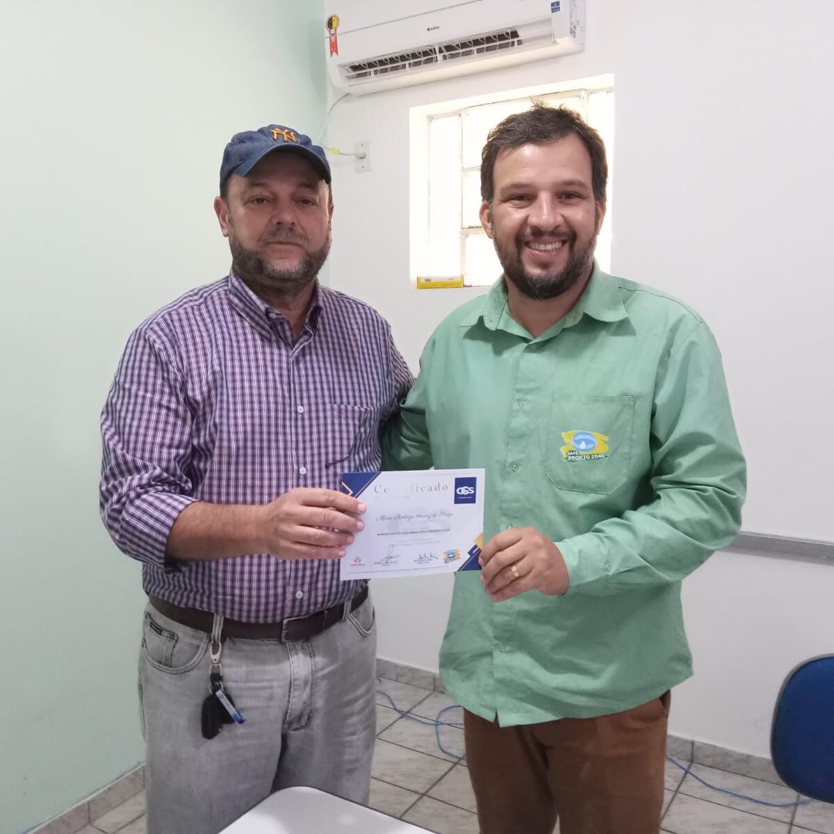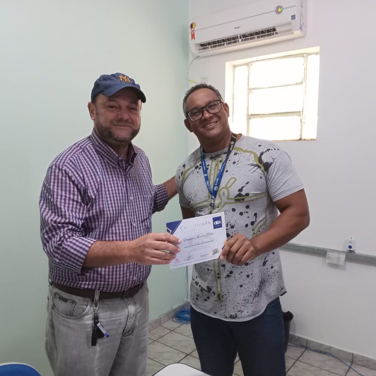 Finalizando o processo, o diretor do SAAE, Eng. Airton Ferraz, está promovendo a entrega dos certificados aos participantes que cumpriram a carga horária do curso.