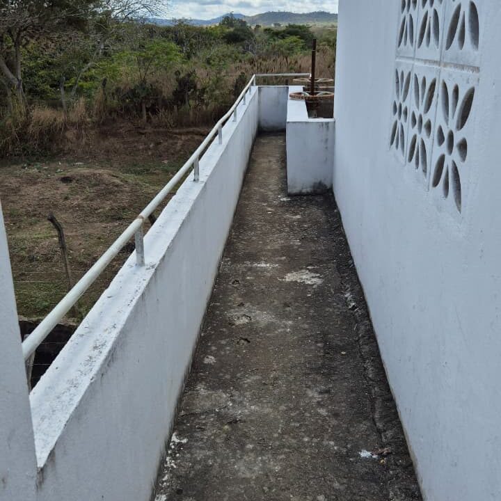 Foi realizada uma limpeza completa em toda a área externa, acompanhada da construção de uma cerca de concreto para fechamento do perímetro da captação, garantindo um ambiente mais seguro e protegido.